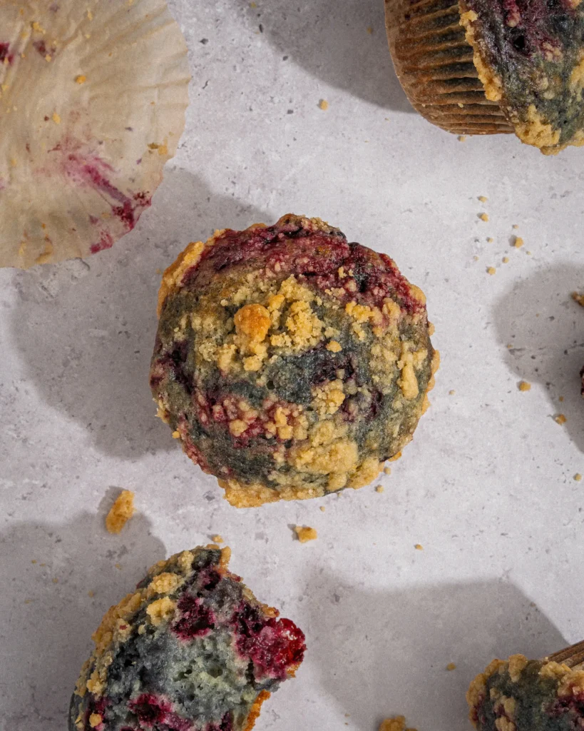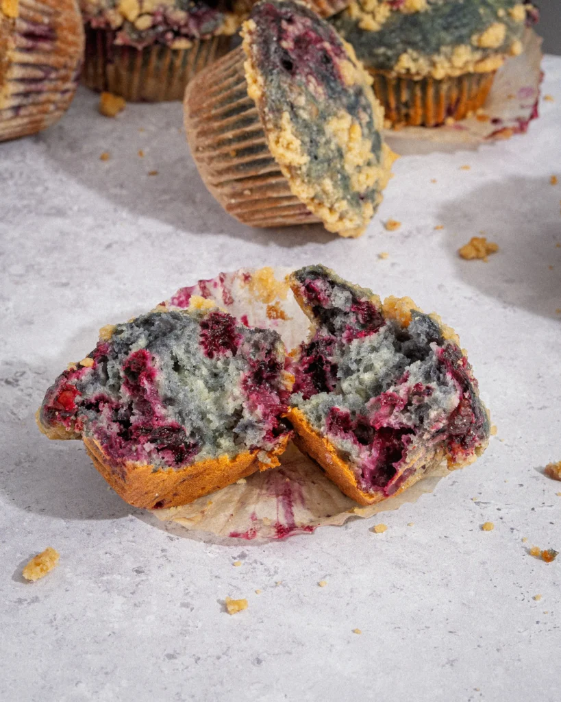 Parfaits pour le brunch, la boîte à lunch ou une collation gourmande, ces muffins streusel aux camerises deviendront vite un classique à refaire toute l’année!